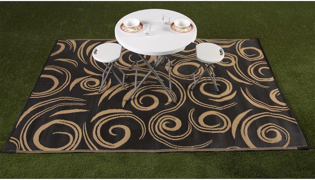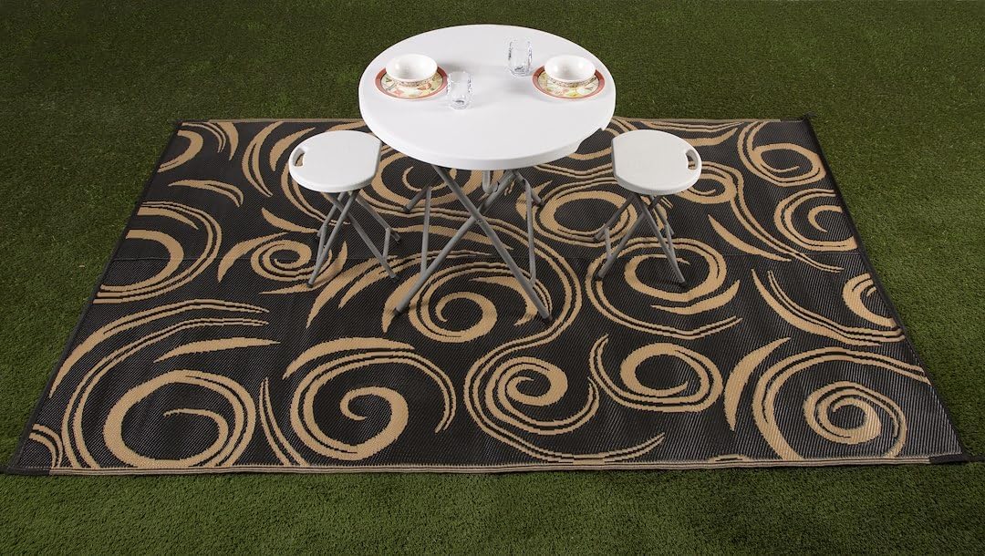 Faulkner 68946 Reversible 12' L x 9' W Black/Beige Polypropylene Camping Mat