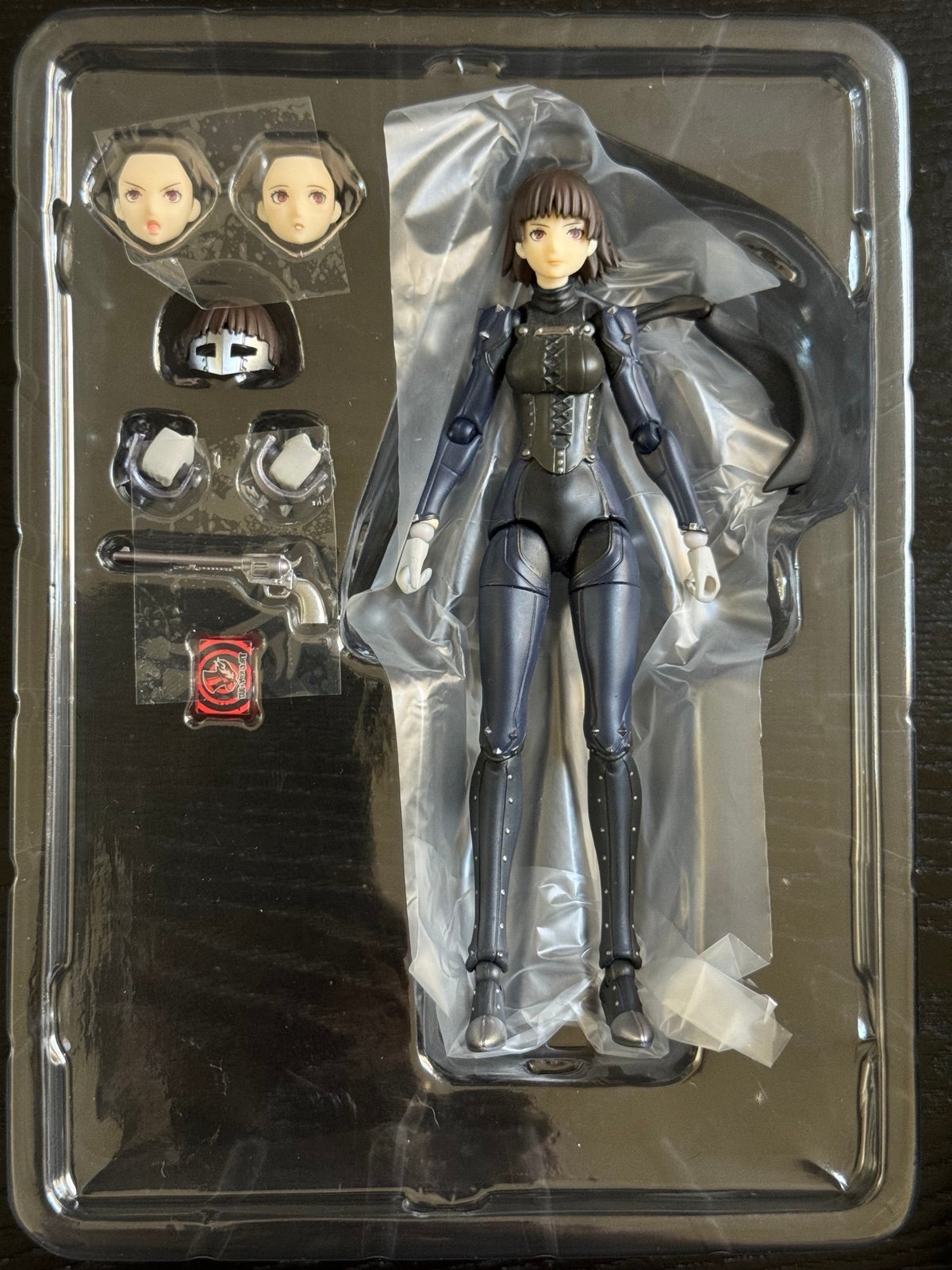 Makoto Iijima from Persona 5! In excellent condition. All original accessories included. Joints are tight and no scuffs on her. I never used the preorder bonus face. The only used looking item in the set is the ziplock bag ^_^