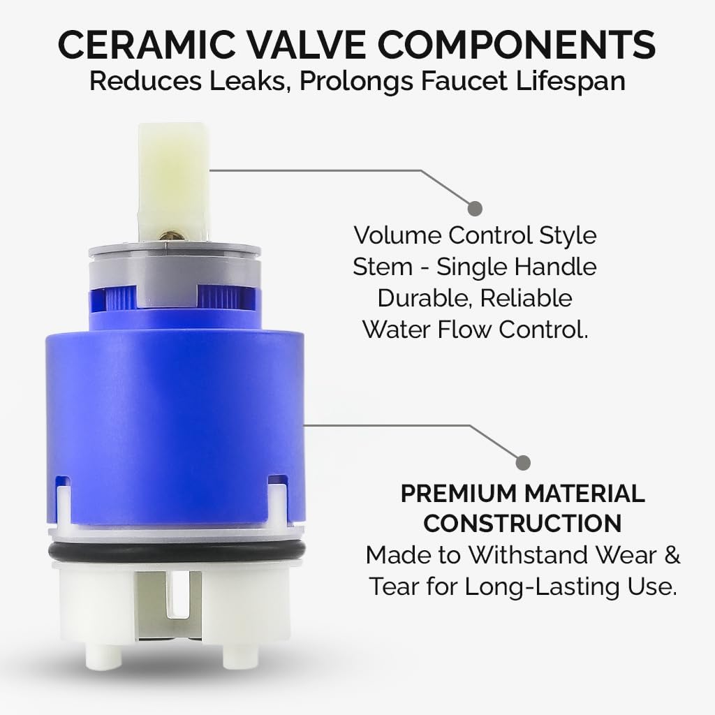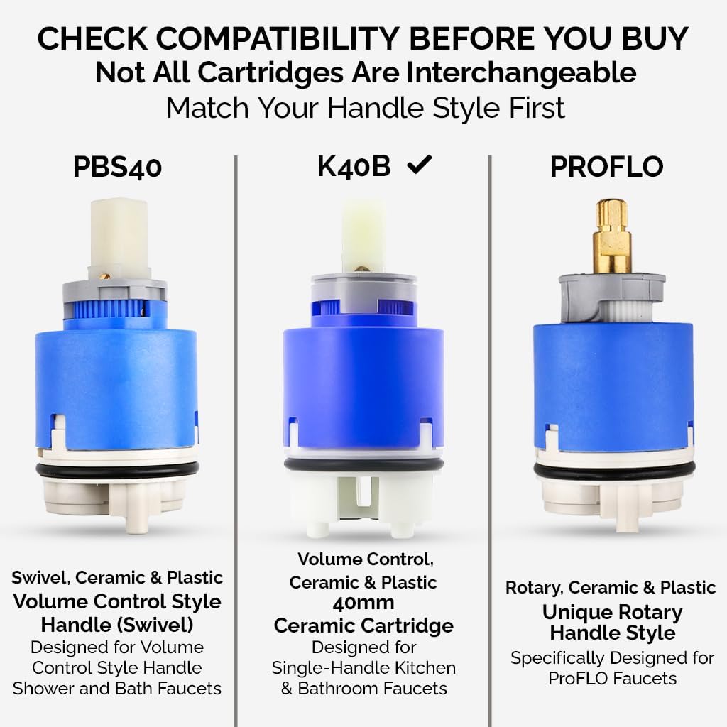 A conventional single-lever ceramic mixing cartridge, Kerox K40B, is compatible with hundreds of faucets. To name a few, it can fit La Torre Starlight series, some American Standard models, Pekoe, Zephyr, and MOEN fixtures. It is a spare part that plumbers, building or building maintenance managers, and avid DIYers want to stock up to repair faucets immediately. Using ceramic OEM faucet cartridge spare provides some distinct benefits like compliance with the warranty of kitchen or bathroom fixtures. Whenever your bathroom fixtures need a repair, we offer you built-to-last OEM parts made from quality materials. This is also the same as Danze DA507009N and replaces Danze model DA603565N. With this newer model Kerox K40B readily available in your toolbox, there will be no worries about bathing or washing hassles from sudden faucet glitches. Before getting new plumbing fixtures, try using this single-lever cartridge that does not use a hot water limiter first to get your faucet working again. It helps fix the water flow on any 40mm or 1 9/16" diameter faucet.