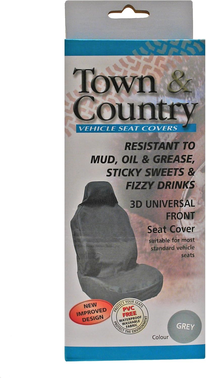 Semi-tailored seat cover suitable for most cars and vans. Re-sealable slots for arm rests and tailored head rest. Waterproof and hardwearing. The material used in the manufacture of our car and van seat covers is high tenacity polyester with a polyurethane backing which is unique to our product range. This material is waterproof but has a weave designed to allow air to circulate more freely between the seat cover and occupant which leads to reduced sweating and a noticeably cooler feel when exposed to sun. Not suitable for seats with air bags. The 3D Universal Front - is a hard wearing, waterproof seat cover that will fit most cars and vans. Easily fitted by sliding over the top of the seat. Has elasticated waist to hold in place. Town and Country are specialists in car seat covers.